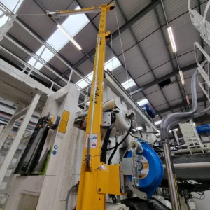 The rotating mast design allows full circular movement, ensuring optimal alignment for workers operations.